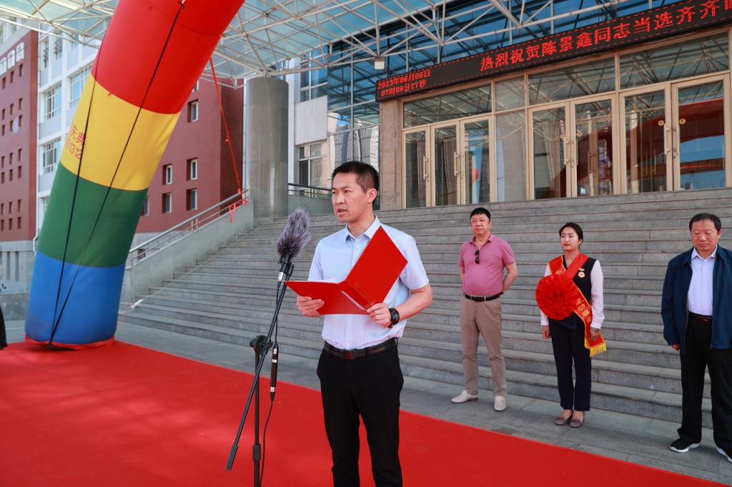 校党委书记郭伟东代表学校向市第三十五届劳模陈景鑫同志表示祝贺,向辛勤工作在全校各个岗位上的教职工致以崇高的敬意。