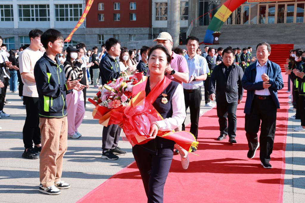 劳动创造价值,奋斗铸就发展。传承劳模精神,共建百年老校!市劳动模范陈景鑫在接受学生代表敬献的鲜花后,伴随着热烈的锣鼓声,带着全校师生的祝福前往市工人文化宫,参加齐齐哈尔市第三十五届劳动模范大会。