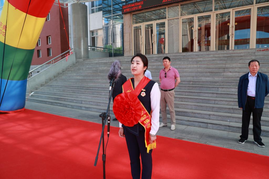 市劳动模范陈景鑫表态发言,她回顾了13年来的成长经历,从教育教学一线、系主任到院长助理,感谢学校给予的每一个平台和机会,感谢学校领导和同事们的支持和帮助。她表示,一定会更加严格要求自己,以更良好的工作状态、以更严谨的工作作风、以更饱满的工作热情和干劲投入到今后的工作中去,与同事们携手同行,为学校的发展贡献力量!