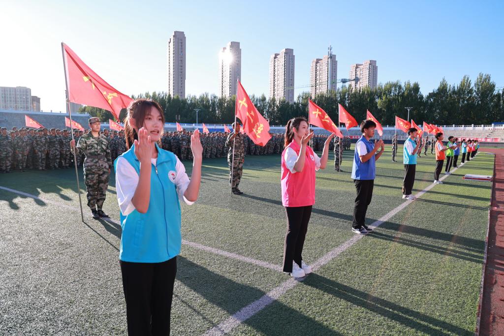 全体新生跟随学长进行宣誓,表达要践行校训精神、培养五种能力,积极实践,早日成为应用性、职业型的创业者的信心与决心。