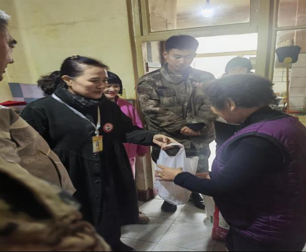 助老小分队成员带去了慰问品米、面、油等生活必需品,还带去了学校面点专业学生亲手制作的点心,同时为老人们送去了节日的问候和祝福。
