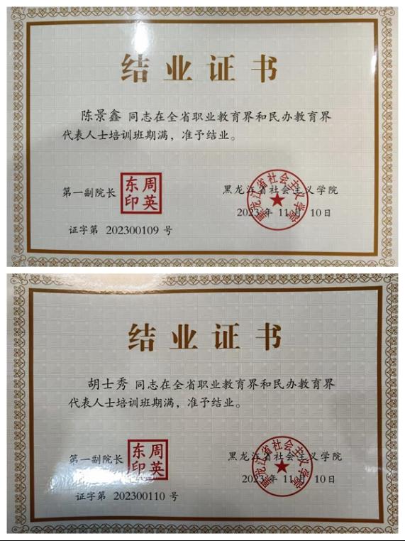 11月6日-10日,由中共黑龙江省委统战部指导、黑龙江省中华职业教育社主办、黑龙江省社会主义学院承办的全省职业教育界和民办教育界代表人士培训班在哈尔滨开班,来自全省各级中华职教社分社主要领导、负责人及职业教育界、民办教育界代表人士共计45人参加了此次培训班。齐齐哈尔市中华职业教育社秘书长、齐齐哈尔工程学院院长助理陈景鑫,学校办公室胡士秀参加了培训班。