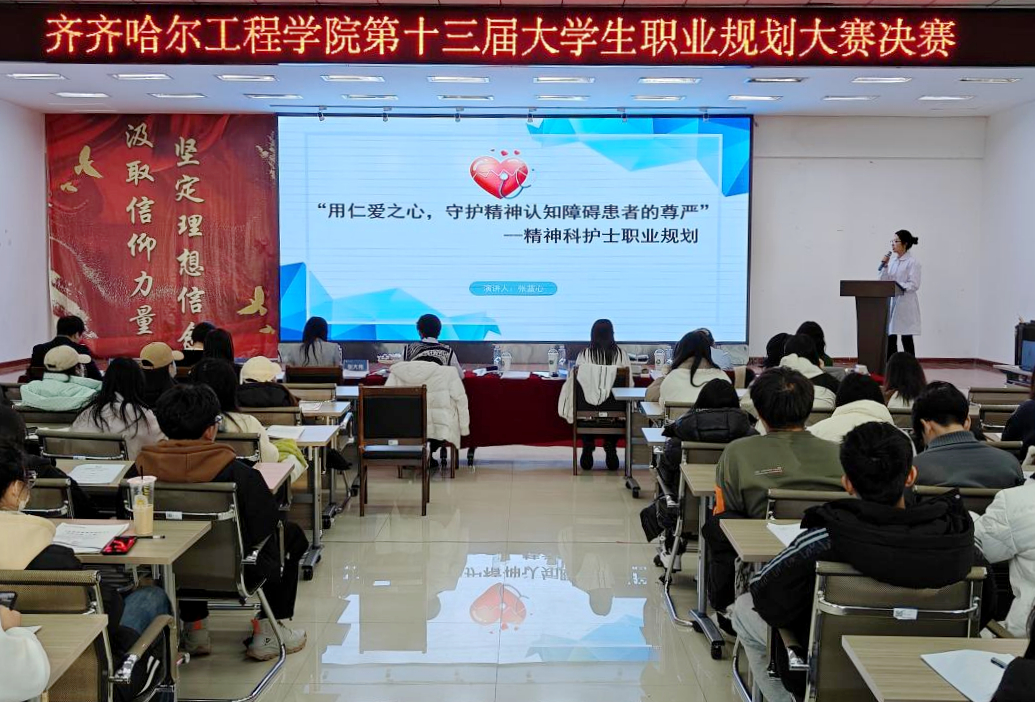 比赛邀请黑龙江省大学生就业创业指导中心王妍、齐齐哈尔大学大学生生涯发展中心主任张大伟、齐齐哈尔医学院双创办公室副主任肖琼、职业生涯规划课程负责人陈婷婷、齐齐哈尔高等师范专科学校就业创业中心主任王立峰、齐齐哈尔市科技企业孵化中心负责人吴云、建华医院护士长魏来担任大赛评委。