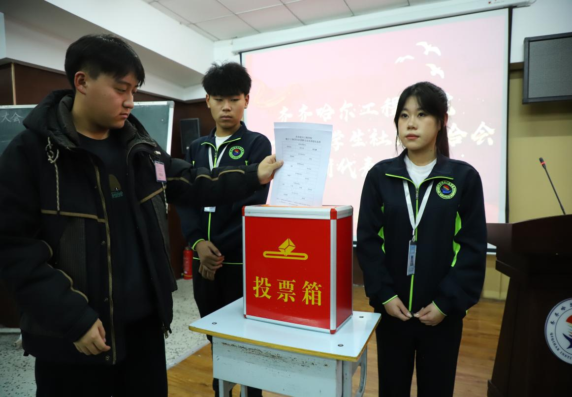 第十三届学生社团联合会主席、副主席、学生社团联合会委员进行选举。在竞选环节,学生社团联合会两位主席候选人、三位副主席候选人、十六位学生社团联合会委员,依次进行竞选。在监票人的监督下,学生代表进行了无记名投票。