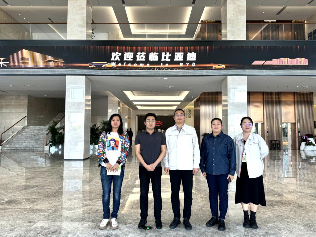 30日上午,敖林喆一行赴比亚迪股份有限公司(深圳总部),校企合作部经理杨双喜对教师们的到来表示欢迎。比亚迪2011年上市,是中国新能源汽车行业的领军者,公司业务已经覆盖到汽车、轨道交通、新能源、电子四大领域。
