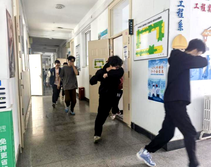 随着火情信号发出,演练正式开始。听到警报后楼内各疏散口、楼梯口等重点区域的引导员迅速就位,引导学生遮住口鼻,保持弯腰,沿疏散标识所示方向迅速、有序撤离至楼外安全地带,圆满完成演练全过程