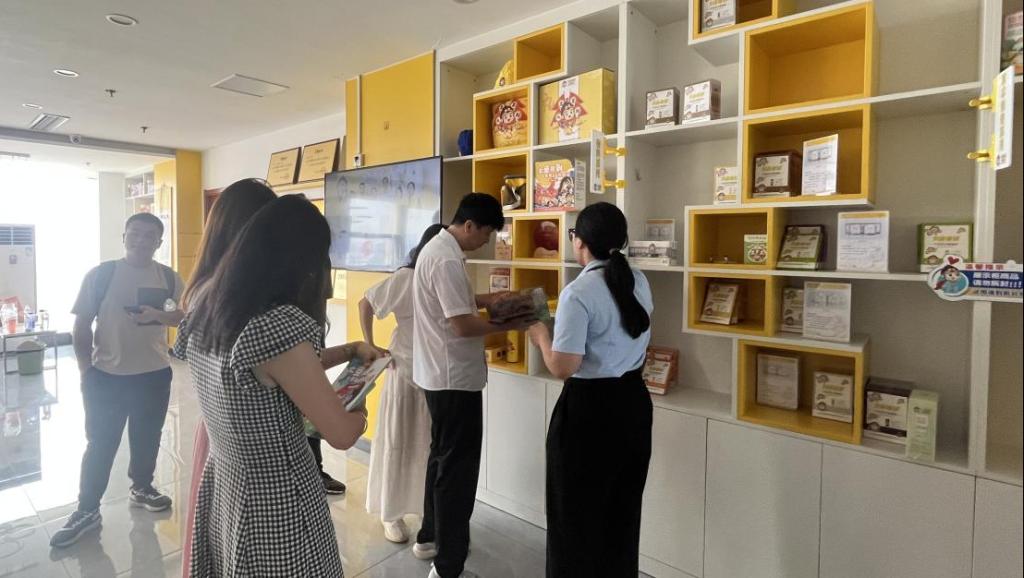 24日上午,学校教师来到济南连起企业管理(山东)集团股份有限公司旗下“悦兮茶也”总部,招商经理向峙对学校教师一行表示欢迎,并对药食同源项目的历史背景和市场需求进行介绍,双方深入交流了当前行业发展趋势,以及消费者对药食同源的认知程度和接受度。学校教师还实地参观了“悦兮茶也”门店,了解了项目将涉及的药食同源产品种类,以及产品的质量与安全等情况。