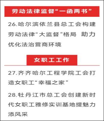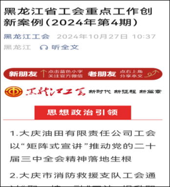 学校工会的工作案例《齐齐哈尔工程学院工会打造女职工“幸福之家”》,从“是生育奖励送祝福、孕期服务保安康、特色看护解难题”等角度,宣传了我校女工工作,最终入选黑龙江省工会2024年第四期重点工作创新案例。