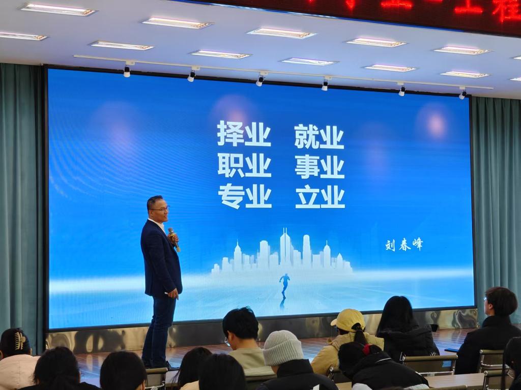 随后,刘春峰指出专业不同发展阶段技能要求与能力特征,希望同学们通过积累专业知识、拓展人脉资源、提升综合素养等方式,为迎接就业做好充分准备。