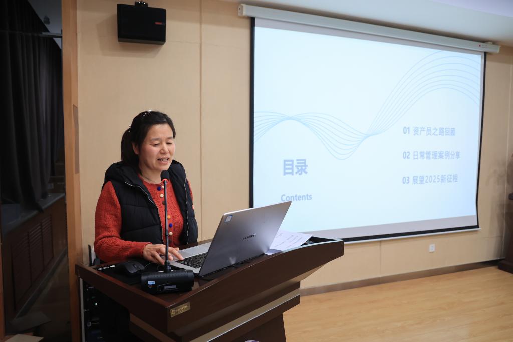 最后,姜岩作总结发言,她表示,2024年资产管理工作取得了较好成绩,工作中有创新、有亮点,对存在的问题能及时反思,强化管理风险防控。针对2025年工作她提出三点建议:一是工作中要有全局意识,采购兼顾先进性与实用性,发扬学校勤俭治校的优良传统;二是工作中要有服务意识,资产管理要满足教育教学需要,为师生提供高效、便捷服务,深入调研,做好管理过程跟踪反馈,具有换位思考能力,有效解决问题,并持续优化管理制度机制;三是强化专业意识,资产管理人员要加强业务理论学习,提升自身业务能力,为我校审核评估、申硕工作作出更大贡献。