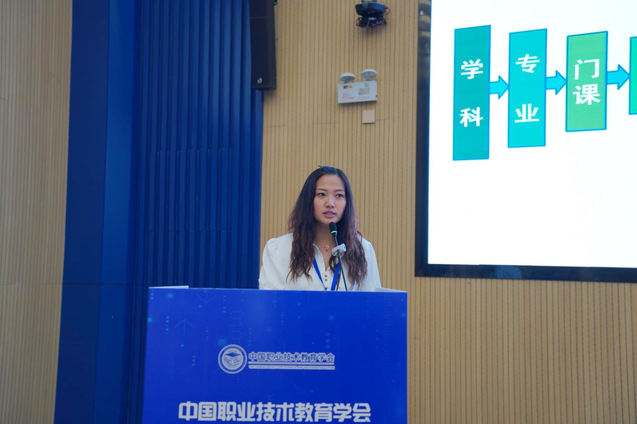机电学院新能源汽车工程专业教师曹克晶在研讨会分会场(说课程、说教材),围绕FT课程建设,从课程性质与定位、课程设计思路、课程目标、课程内容、课程资源、课程教学方法与手段、课程考核等七个方面作了题为“能力导向,德才兼修 ——《汽车服务企业管理》 教学案例”的交流分享。