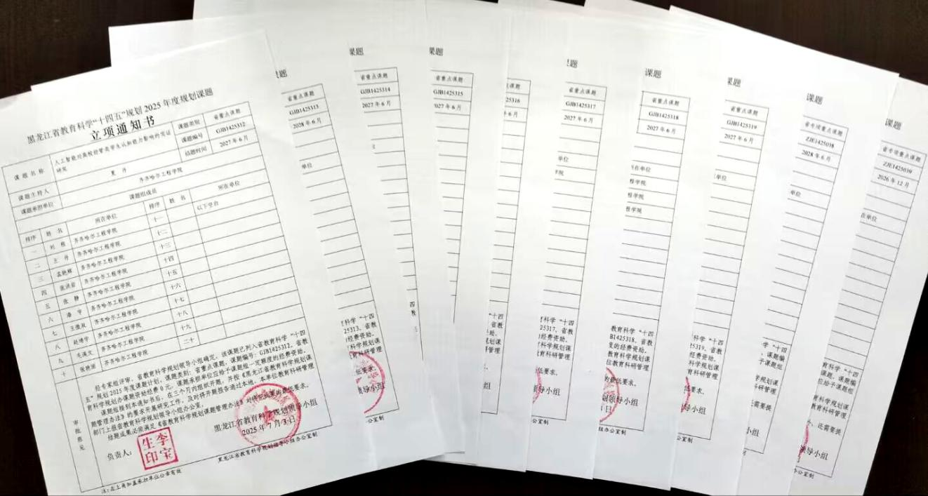 今年上半年,学校科研处认真把握《教育强国建设规划纲要(2024-2035 年)》和全国、全省教育大会对教育事业提出的新要求,根据黑龙江省教育科学规划领导小组课题立项通知,深入开展了2025年度课题立项申报工作,经本人申请、各部门推荐、学校遴选之后,最终推荐上报省级重点课题11项。在课题培育和申报过程中,科研处有针对性地进行了多次课题立项指导,有效保证了课题申报材料质量,为我校本年度获批省级重点课题10项之多奠定了基础。