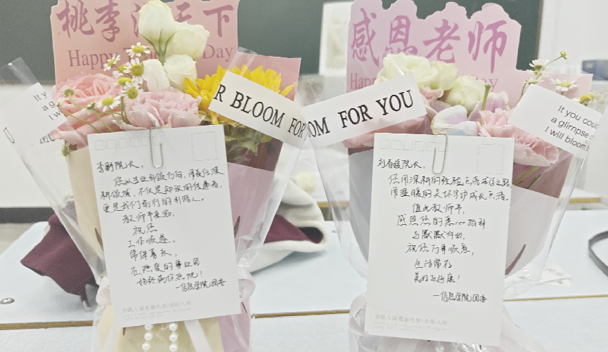 一场祝福接力:诉师生真情,暖校园时光课堂上的一束鲜花、信笺里的一段心里话、书签上的一句寄语……教师节期间,学校各二级党组织结合自身特色,组织学生开展了形式多样的祝福活动,向授课教师、生涯导师、辅导员表达感恩之情。信息学院的学生在写给李野院长的祝福中写道:“您从专业到领域,用深厚的经验点亮成长之路;用温暖的关怀守护成长点滴,更是我们前行的引路人。”这些真挚的祝福,通过课堂互动、线下投递等方式传递到教师手中,不仅让教师们收获了满满的感动,更拉近了师生间的距离,让校园充满温情。