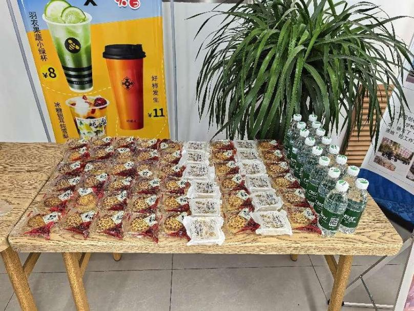 一份桃李祝福:融食堂心意,送节日温暖。9月10日当天,学校各食堂门口格外热闹——这里设置了“教师节祝福台”,工作人员手捧“桃李礼包”(内含月饼、矿泉水和食堂代金券),向每一位前来就餐的教师送上节日祝福。据统计,当天累计发放200余份礼包。工作人员以贴心服务让教师在日常饮食中感受到节日的温暖。