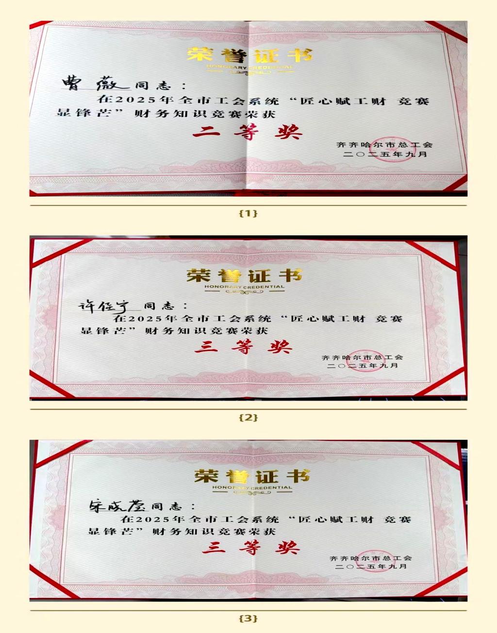 9月15日,由齐齐哈尔市总工会主办的“匠心赋工财 竞赛显锋芒”全市工会财务知识竞赛在市工人文化宫成功举办。我校土木与管理学院和财务处共选派9名教师代表参赛,他们在比赛中发挥出色,最终荣获多项个人与团体奖项。