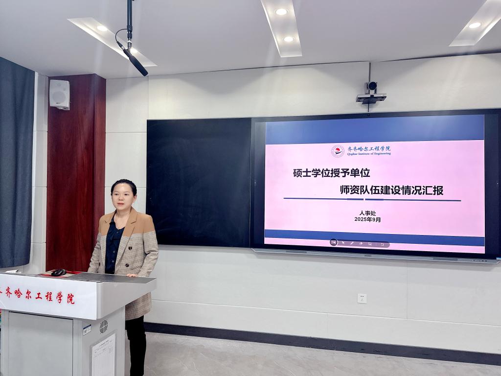 随后,教务处、人事处、科研处负责人以《硕士学位授予单位建设基本条件》为核心遵循,分别从教学改革与人才培养、师资队伍结构优化、科研创新能力提升等方面汇报了当前进展,分析优势与不足,并提出下半年具体改进计划。