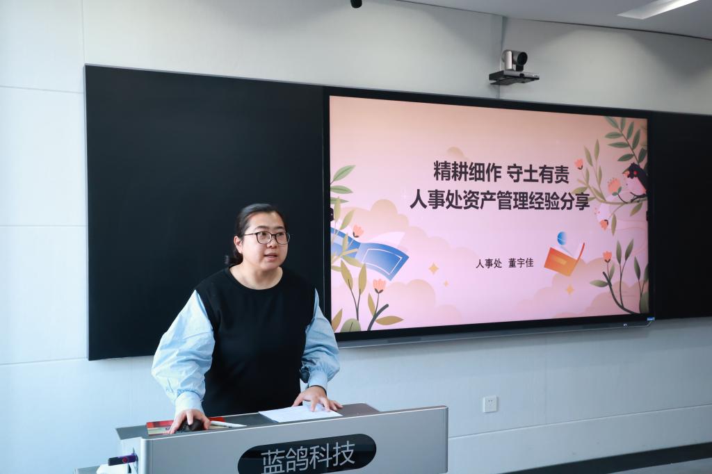 在经验分享环节中,2025年度优秀资产员、党委宣传统战部隋亮老师坚持节约创新,通过利用旧设备、优化配件、以低成本完成连廊环境布置,实现了小投入、高效益,充分展现了勤俭务实的工作作风。人事处董宇佳老师践行“修旧利旧、责任到人”的工作思路,以局部翻新替代整体更换办公设施,有效降低了成本,为资产管理员提供了宝贵的实操经验。2025年度优秀资产导师吴凤德以带教新管理员国贺阳为例,推行“理论+实操+考核联动”的带教模式,充分发挥传帮带作用,彰显了学校资产人才梯队建设的成效。