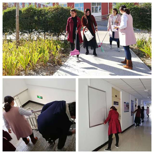 由于公寓保洁人员放假,为保证公寓卫生,10月7日,机械专业学生党支部书记王虹与电气专业教师党支部书记刘微带领两支部党员和辅导员及教师等共11人,来到学生公寓开展志愿服务活动。大家带着拖把、扫帚、抹布、垃圾袋、铲子、水桶等工具,分别对自习室和卫生间进行清理,经过两个多小时的劳动,使公寓环境整洁干净,以崭新面貌迎接学生节后返校。