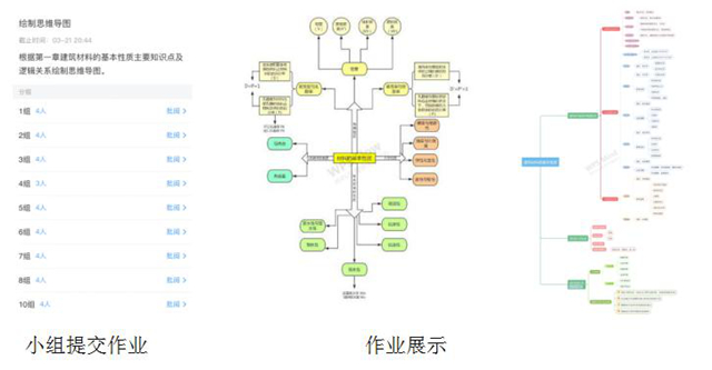 建筑材料的基本性质的小组作业,是根据主要知识点和逻辑关系画出本次课的思维导图,将课程的知识目标、技能目标、态度目标的达成融入其中。