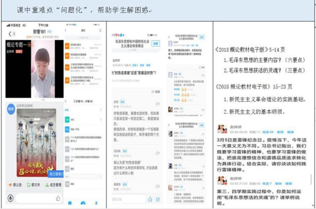 疫情防控期间的在线教学中,思政教学部教师赵婷婷承担着护理学专业2018级学生和财管181班、182班学生《毛泽东思想与中国特色社会主义理论体系概论》课程授课任务,她结合线上教学特点和本门课程内容,进行了“以学生学习为中心、以教学质量为保证”的在线教学尝试,其主要做法是——
