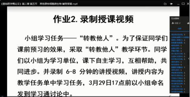 教学视频的选择——在中国大学慕课平台上有多门教学资源,但是我不能直接拿来就用,因为所教这门课程要服务于专业培养目标,为后续课程奠定基础。所以,在学习了多个名师的授课视频之后,我分别选择了中国大学慕课平台上几所学校的慕课,截取了与本门课程大纲知识点结合度较高的视频资源,通过录屏软件录制,置于学习通中,按照知识点拆分成小段视频,每段视频6-18分钟。这可以满足当代大学生的学习特点,但视频不允许学生拖拽。