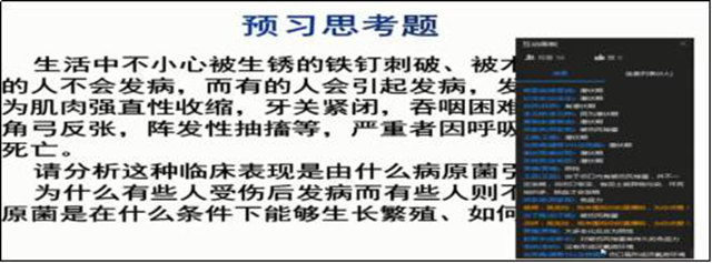 五是课程思政自然融入课程。例如讲到“病原菌侵入机体能否致病,与细菌的毒力、侵入机体的微生物数量、细菌的致病作用与其毒力、侵入机体的微生物数量、侵入途径及机体的免疫状态、环境因素等密切相关”时,通过讲病原体侵入机体能否引起感染还取决于“机体的免疫力的高低”引出课程思政。通过让学生思考“免疫力的高低与什么有关系”,引出对健康的生活方式的倡导。