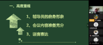 信息系辅导员辛昊交流了召开云家长会的收获与体会,认为辅导员要对云家长会给予高度重视,发挥网络优势,构建全新的家校沟通平台,这要求辅导员提高自身综合素质。作为辅导员,要以身作则,养成良好的读书习惯,努力提高自身文化修养,给学生作榜样。