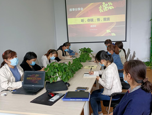6月23日下午,教务处召开成长故事分享会,各位老师精心制作图文并茂的课件,分享自己的成长故事。教务处处长王丹主持故事分享会,蒋春艳副院长对成长故事做点评并与大家交流。