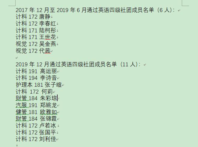 一分耕耘,一分收获。近日,拾光英语竞级社团经查询统计,社团成员中又有11人通过了2019年12月中旬的英语四级考试并获得英语四级证书。