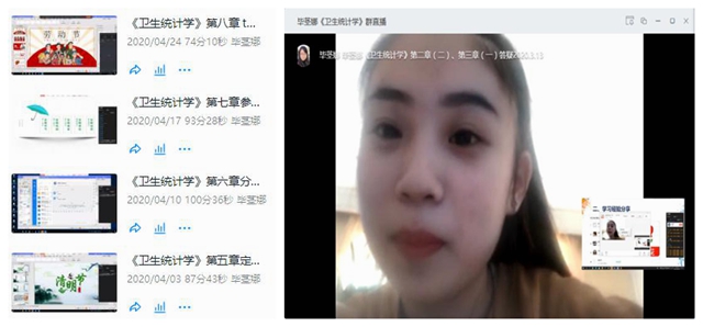 结语:通过《卫生统计学》线上课程教学感悟到,线上学习需要培养学生的自律能力、自学能力,线上线下混合式教学将是课程教学的大势所趋。我将继续努力学习,勇于尝试,以学生学习为中心设计课程,以学生发展为中心设计产出式教学,不断追求更好的教学效果。