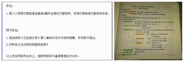 (二)实施过程。1、课前利用学习通布置学习任务单,征集问题。布置任务单时,同时布置思考题、书籍阅读任务,要求书写预习笔记并拍照上传(如图7、图8所示)。节课后,结合课程所学内容,布置针对“大创”项目数据进行分析的产出式作业,以提高学生的综合应用能力,为完成“大创”项目与期末项目作业打好基础,例如统计分析方法中t检验部分中布置(如图9作业)。课前利用学习通进行问卷调查,征集学生学习过程中遇到的问题,并在直播课中逐一解决。找出有错误的学生产出式作业,由其他同学进行纠错,使学生通过不断重复练习,加深对知识点理解记忆。