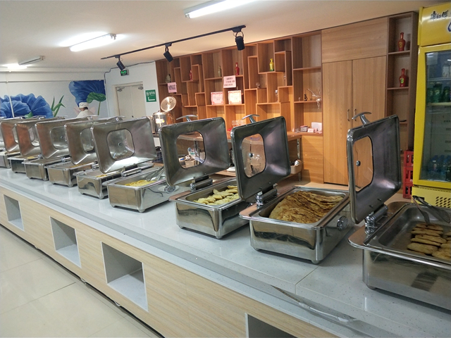 学校总务处食品科科长冯伟介绍了这方面的情况:全校共有五个食堂,总面积12423.72平方米,分布在校园各个生活区和五号教学区附近,设置餐位数2568个,从不同的地段位置特点上满足师生不同时段的用餐需求。