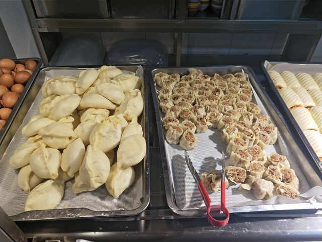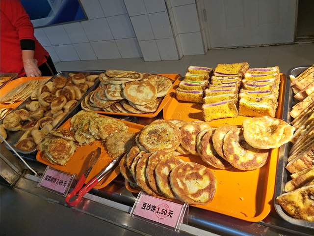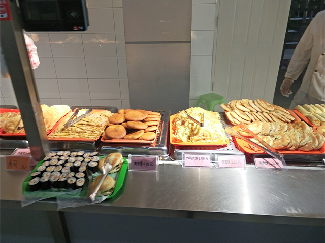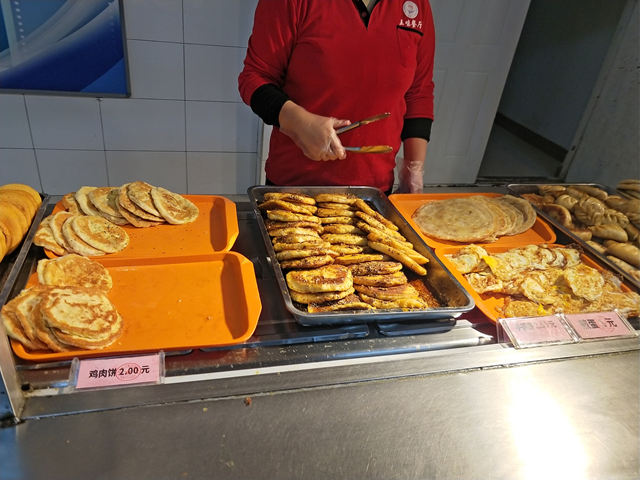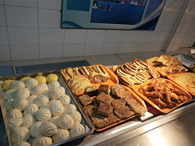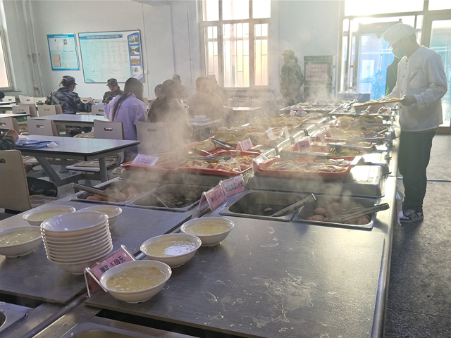 张女士是2015年就进校做餐饮工作的。她说,最近和过去不同的是菜肴偏清淡了些,因为咱们这边老人和老师多一些,另外,南方的同学们也喜欢清淡点儿的;这里的早餐,有免费豆浆、粥、小咸菜,中午有免费的汤,还有米饭和饼。