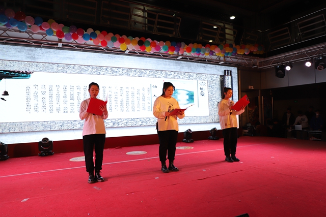 台下的领导与嘉宾也登上舞台与全体演职人员合影留念,历时一个半小时有余的朗诵会圆满结束。