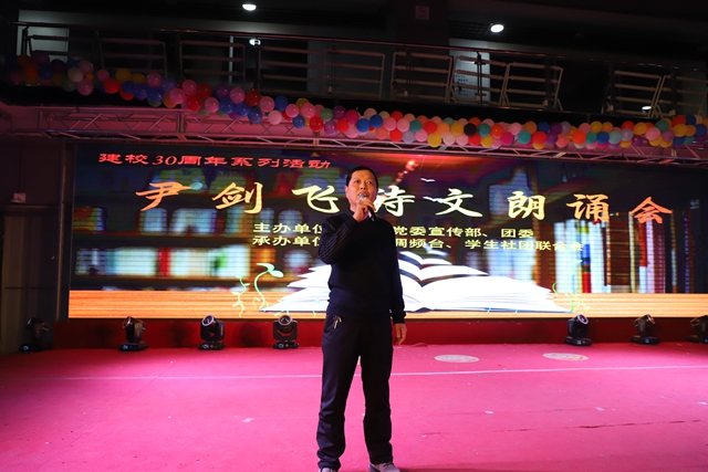 11月10日18点,由学校党委宣传部与团委主办,校园调频台、大学生社团联合会承办协办的庆祝建校30周年系列活动之一“尹剑飞诗文朗诵会”在学生活动中心隆重举行。