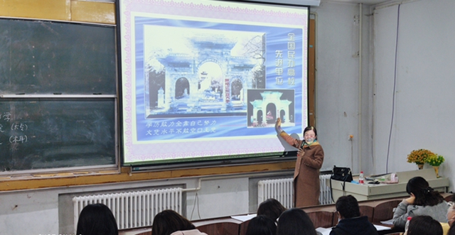 许长艳老师的报告从一辆红色的吉普车讲述开始讲起,在她生动的讲述下,大家了解了当年学校艰苦创业的历程,一张张老照片呈现的就是一段段生动的故事,一枚普通的信封就能勾起一段充满传奇色彩的回忆,一张合影展示的就是一群始终与时俱进的创业者形象。