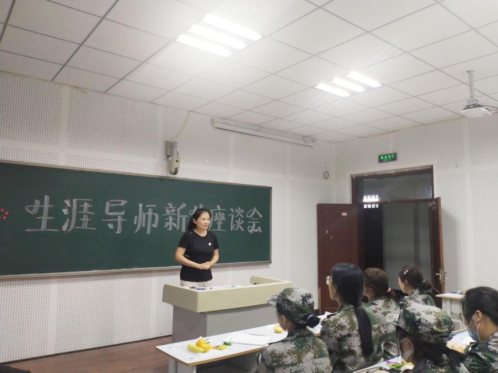 9月4日晚6点30,孙爱萍主持座谈会,姜岩及部门全体老师、报到的新生、部分学生家长参会。孙爱萍介绍此次座谈会的目的:一是让大家尽快适应大学生活;二是增进老师与学生、同学与同学之间的交流;三是每位同学面见自己的生涯导师。针对学生的问题,老师进行解答。
