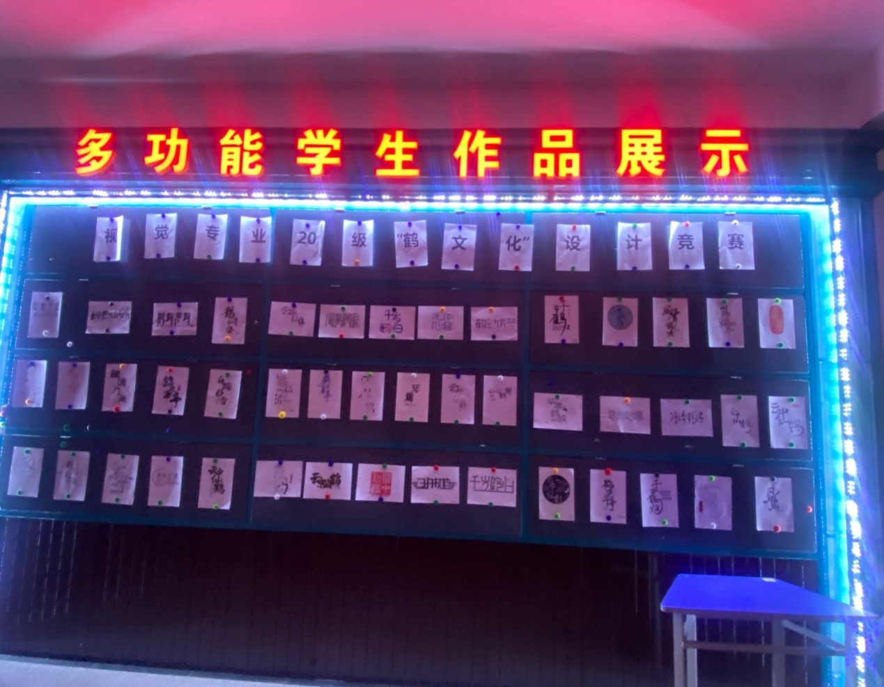 此次展览的内容是“鹤文化”主题字设计竞赛的优秀作品,竞赛由信息工程系视觉传达设计专业和齐齐哈尔市琪鹤源公司联合举办,视觉传达设计专业2020级学生的百余份作品参加展出。
