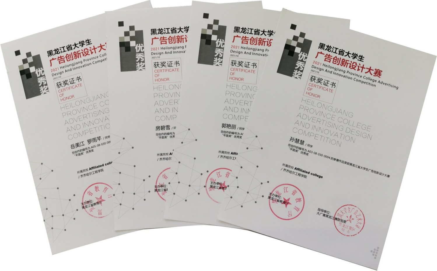 近日,全国第十三届大学生广告艺术设计大赛奖项揭晓,我校信息工程系视觉2019级孙慧慧、房碧雪和视觉2020级郭艳丽、岳美江、罗雨芊五名同学的作品入围省赛并获得优秀奖。