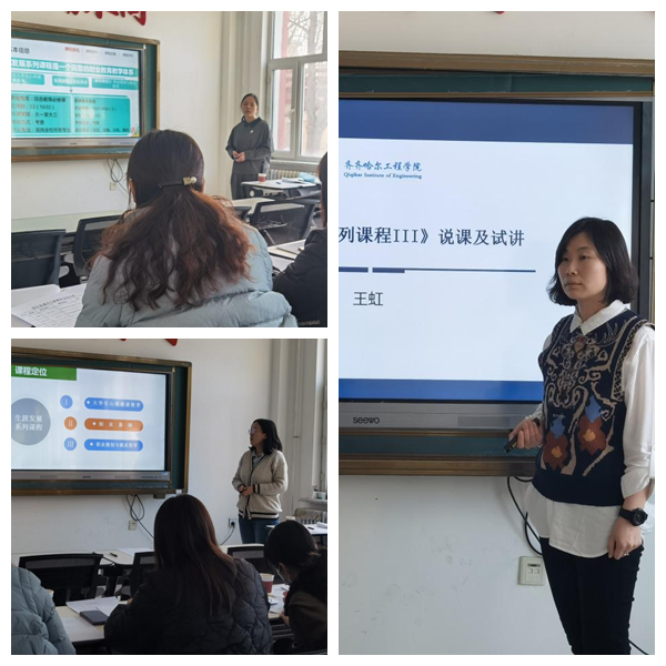 2月28日下午,学生发展中心在二号教学区1106室组织开展了2021-2022学年第二学期新任课教师试讲活动。全面质量管理办公室主任孟艳辉、教师发展中心主任李文禹、学生发展中心主任康静、基础部副主任冯洁担任评委,来自机电工程系王虹、学生工作处刘晶、办公室胡士秀三位教师分别进行了试讲。
