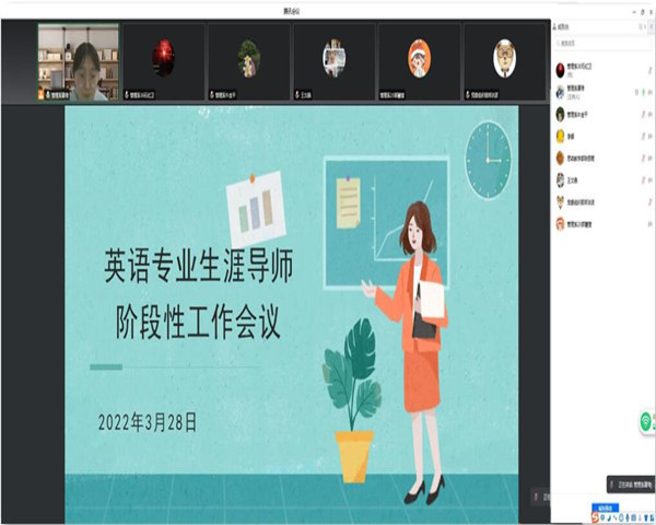 3月28日下午,英语专业召开线上生涯导师阶段性工作会议,英语专业全体生涯导师参会,专业长康琦主持。首先,康琦针对2018级毕业生整体情况进行了详细介绍,并将目前就业情况进行了总结,要求各位生涯导师多关注学生就业情况,帮助学生及时解决就业遇到的问题;多关注2019级和2020级学生情况,及时了解学生状态,给予学生适当的帮助;尤其在疫情防控期间,更需疏导学生紧张情绪,保证学生身心健康。最后,各位生涯导师提出了目前存在的问题,康琦逐一解答,为后续工作的推进打下了基础。