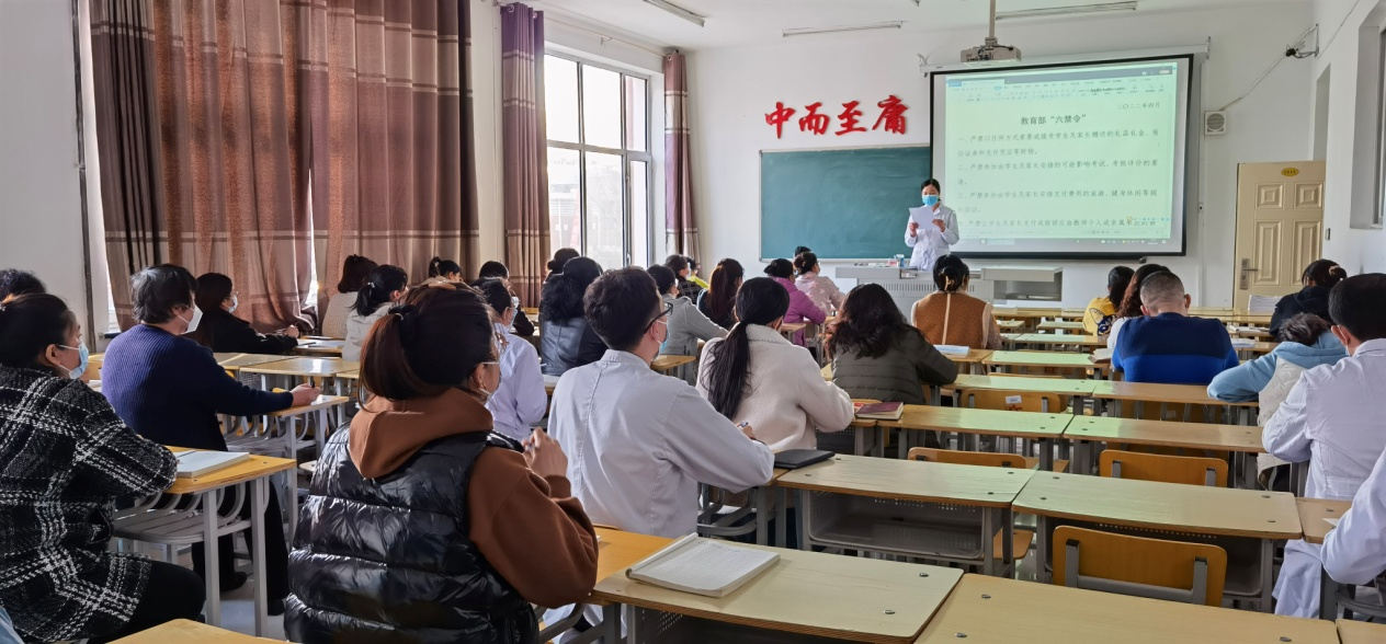 4月5日下午,健康与护理系在一号教学区1213教室对系部全体教职工进行了师德师风相关文件的培训学习。活动由系党总支书记张苗主持。