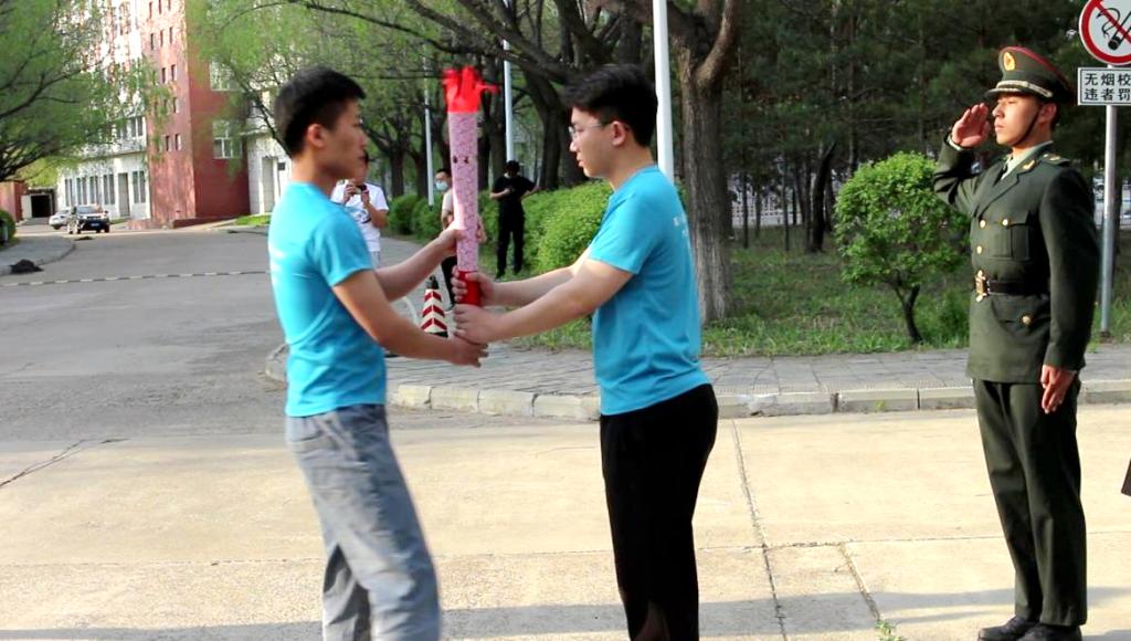 仪式首先由14名火炬手从明德广场起程,在学校学生教官团指引与保障下,最终传递至主会场,由创业学院院长陈景鑫点燃双创之火,将双创的火焰延续。
