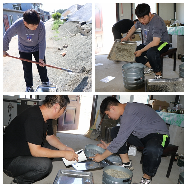 接下来,笔者在建筑系指导教师带领下,赶赴江桥附近的宏正公司,因为该系土木工程专业一名大三的同学付航吉在这里当“实验员”。到这里后,见小付同学正在铲取沙石的铺路材料,准备做实验工作。