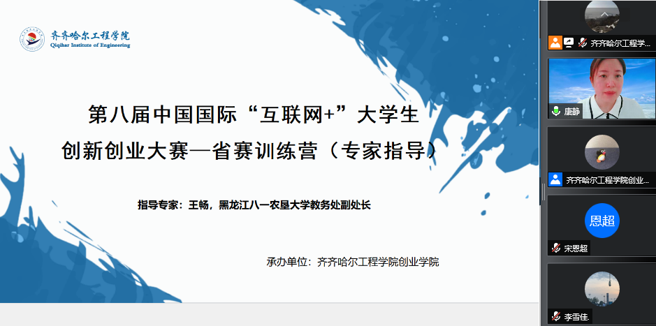 6月28日至7月5日,创业学院在科技园二楼K222举办为期8天的第八届中国国际“互联网+”大学生创新创业大赛齐齐哈尔工程学院重点推荐项目提升训练营。根据初赛及2022年学校大学生创新创业训练计划各系申报项目情况,由75位指导教师、109位同学分28组参加本次训练营。