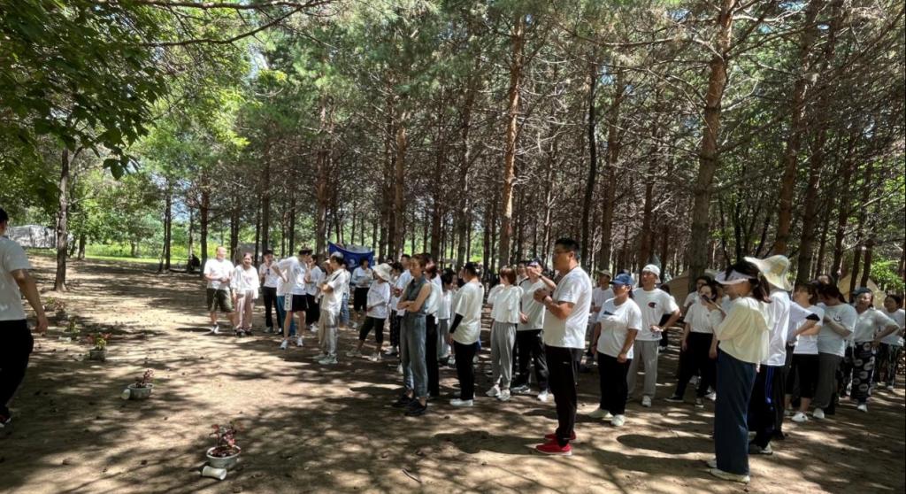 到达水师度假区后,班委会以及教官团组织新教师们稍作休整,并对游戏、午餐环节进行介绍。