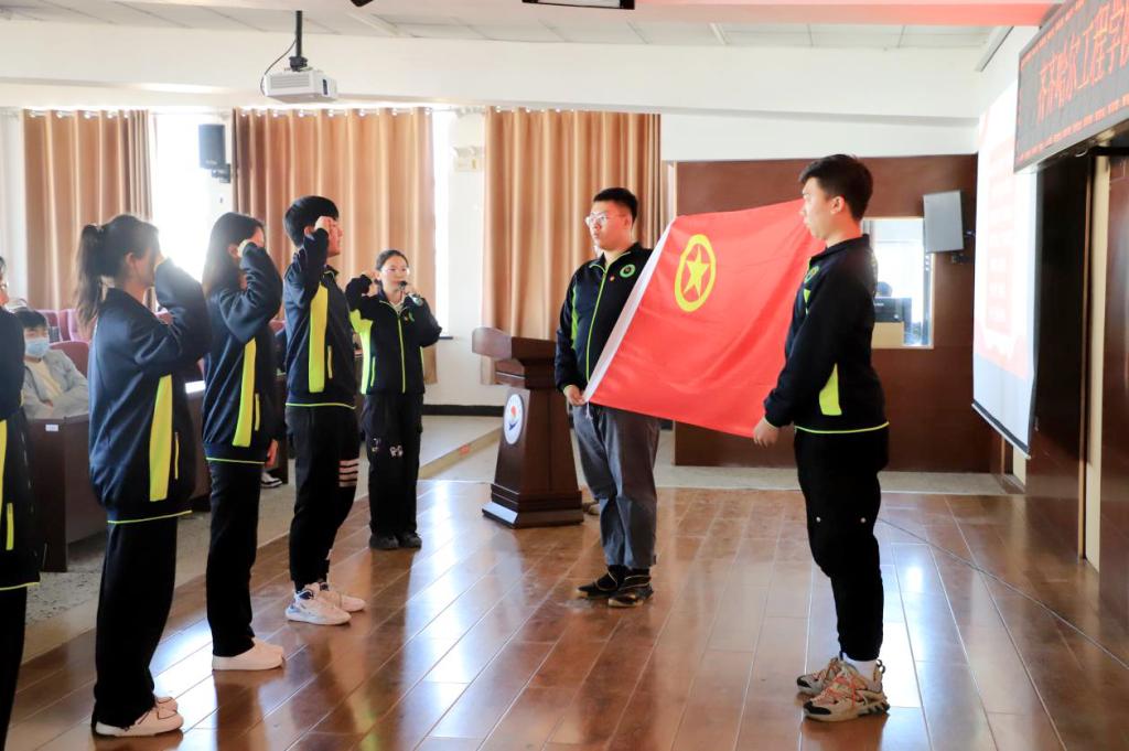 在团委副书记孙宇同学的领誓下,全体新团员面对着鲜艳的中国共青团团旗,举起右拳,庄严宣誓。铿锵有力的声音,彰显了新团员一心向党的坚定决心。
