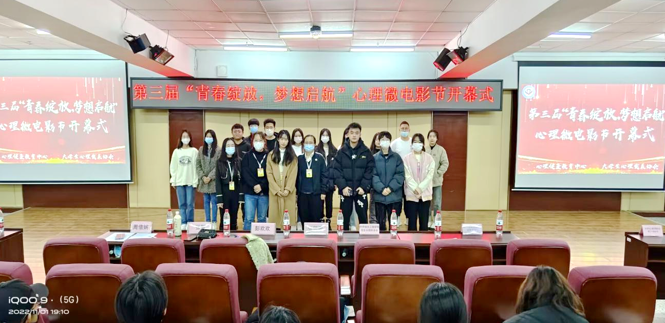 近日,大学生心理发展协会在图书馆501举办了第三届“青春绽放·梦想启航”心理微电影节开幕式。学生发展中心教师彭欢欢、张辑娜、张贺及300余名学生参加。