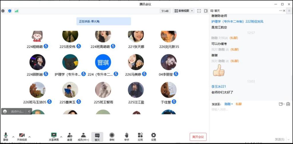 毕茎娜对近日为学生辛苦付出的学生骨干表达了谢意,随后向学生明确了后续的课程、作业和考试安排,叮嘱了大家在返乡途中尽量不要乱走动,在车上不要随便摘下口罩等细节;在学习方面,提醒大家带好学习材料,身份证、学生证等,不要因考试和返家产生焦虑情绪,让大家不要忧心期末复习,为大家送上定心丸;同时,对学生提出的返乡、线上考试的问题给予解答。