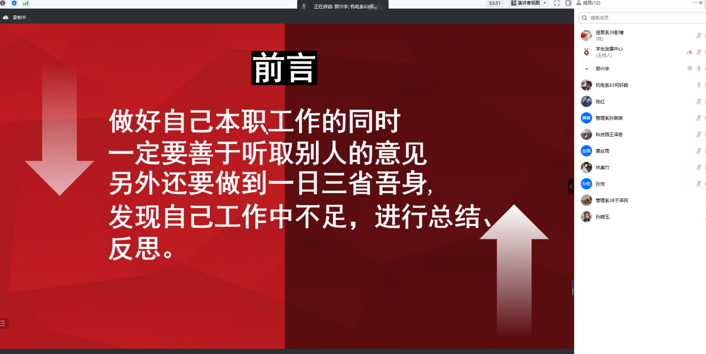 首先,牛老师对近期大家的身体情况和工作情况予以关心和问候,并宣布总结会开始,各位成员有序汇报。